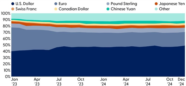 Aside from DeepSeek and questions about America’s ability to innovate, U.S. exceptionalism is partially based on the dollar’s de facto status as the world’s reserve currency. Dating back to the immediate aftermath of the Second World War, rivals have been attempting to undermine the dollar. Allies have also complained about the advantages America receives from its status, with de Gaulle’s government decrying America’s “exorbitant position” in international finance.
